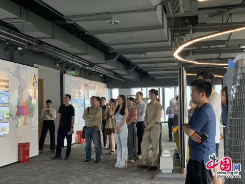 与会嘉宾和企业家参观锦江云端会客厅,了解锦江软件园的布局规划。