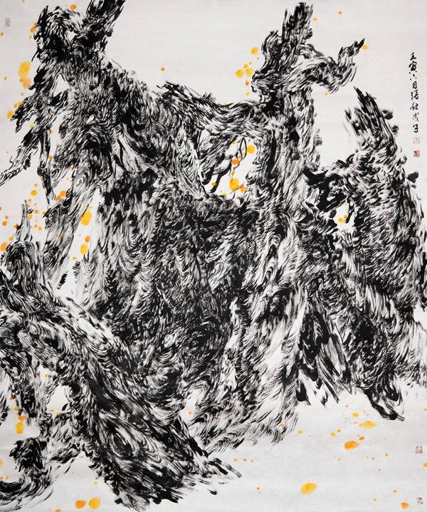 展览展出张录成作品二十余件。张录成在西域大草原工作、生活近四十载,醉享西域绘画,敬畏丝路文明。其绘画立足于书画同源的传统,追求重墨粗笔的自由抒写,以丝绸之路上的胡杨、骆驼、马、牛等为表现对象,通过对丝路文化多年来的深入研究与绘画实践,探索出表现丝绸之路苍茫、博大、雄浑、悲壮的笔墨语言。其用浓墨意笔表现群体奔涌的艺术物象,展现生命的苍劲,古今穿越的深思,展示对生活的感悟、对自然的热爱。此次展出的作品深刻反映其在传统基础上坚实的审美价值,凸显出新时代守正创新的文化自信。