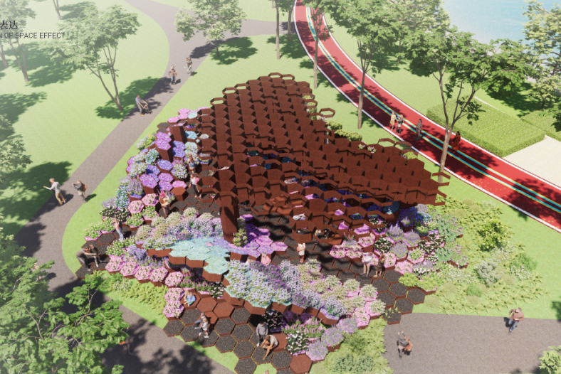通过阅读空间、聚会空间、展示空间等单元模块的不同布局和组织,创造出更多不同形态的齿轮花园,满足不同活动需求的场景布置及空间功能。同时,通过种植一些能够吸引野生动物光顾的植物配置,营造花园生境中的自然场景,提升市民幸福感,重新审视城市之美,激活生活乐趣。