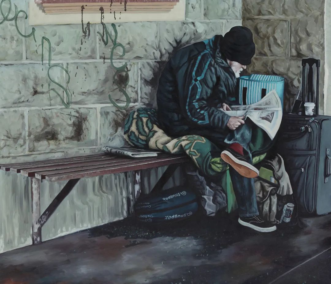 《珀斯火车站前街心公园一角》,120✕140㎝,2017.9