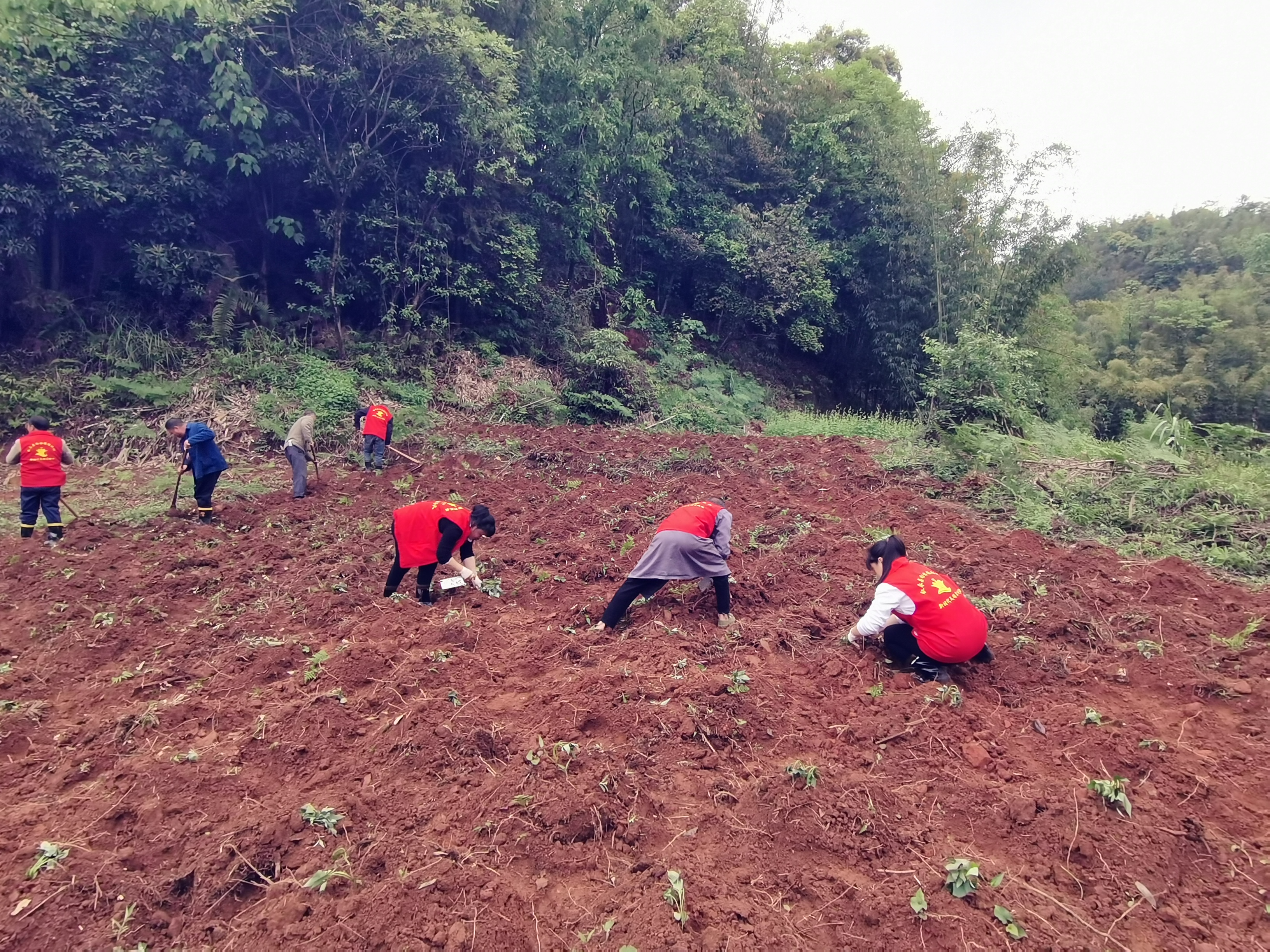 为更进一步抓好农业生产,端稳粮食饭碗,提高耕地产能,稳定粮食面积和产量,确保农民增收,有效遏制耕地撂荒情况,2023年4月23日,四川省泸州市叙永县向林镇人大代表朱鑫一行参加了向林镇棉竹村3社撂荒地整治工作(基本农田)。在调研本社撂荒地整治情况后,朱鑫一行挽起袖子下到田中为外出务工家中无劳动能力农户栽种红薯。