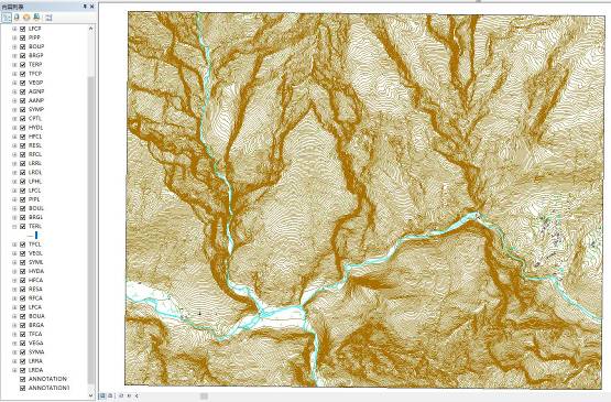 六是将地物和地貌投影到水平面上,并按一万比例尺缩绘到图纸上形成1∶1万地形图6063幅。