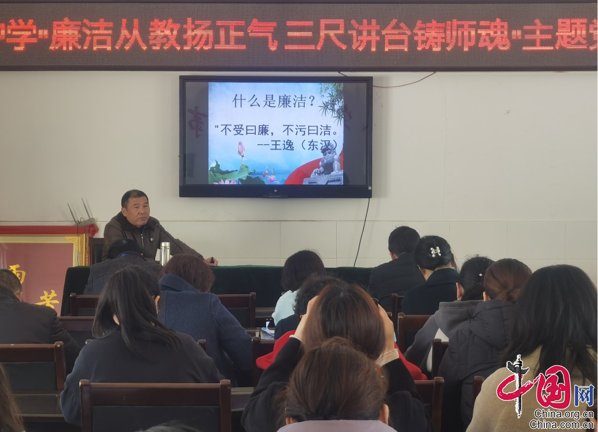 党课上,蒋圣勇以“廉洁从教扬正气 三尺讲台铸师魂”为主题,从心正身正—廉洁从教之根本、依法依规—廉洁从教之保障、爱岗爱生—廉洁从教之灵魂三个方面展开学习,带领全体教师再一次学习了《新时代中小学教师职业行为十项准则》,例举勇救学生的英雄教师谭千秋、向倩、张丽莉等教师的动人事迹,勉励老师们爱岗敬业、爱生如子,发扬无私奉献精神,廉洁从教、倾心从教,在三尺讲台上书写精彩人生。围绕“教辅资料违规收费专项整治工作”,解读学校工作方案,向全体教师进行宣传动员,提出整治工作的具体要求。会后,全体教师对教辅资料违规收费问题进行了认真的自查自纠。下一步,学校将通过学生、家长问卷调查、入班检查和实地家访等形式,将专项整治工作走实走深,确保整治工作取得圆满实效。