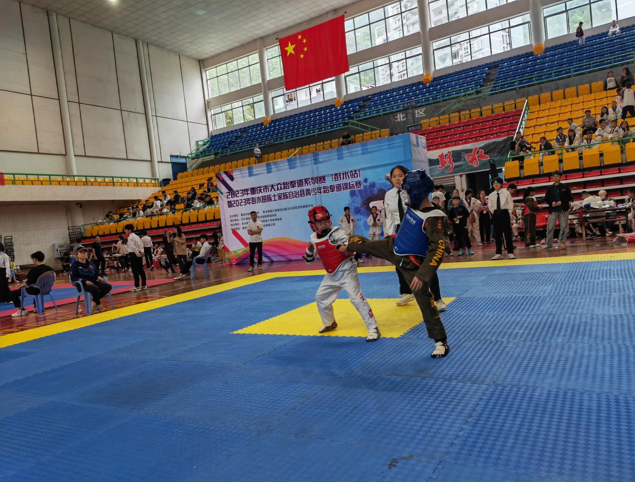 5月1日至3日,在重庆市跆拳道协会、彭水自治县文化和旅游委员会的各级领导大力支持下,中国体育彩票2023年重庆市大众跆拳道系列赛暨2023年彭水苗族土家族自治县青少年跆拳道锦标赛成功在彭水体育馆圆满落幕。