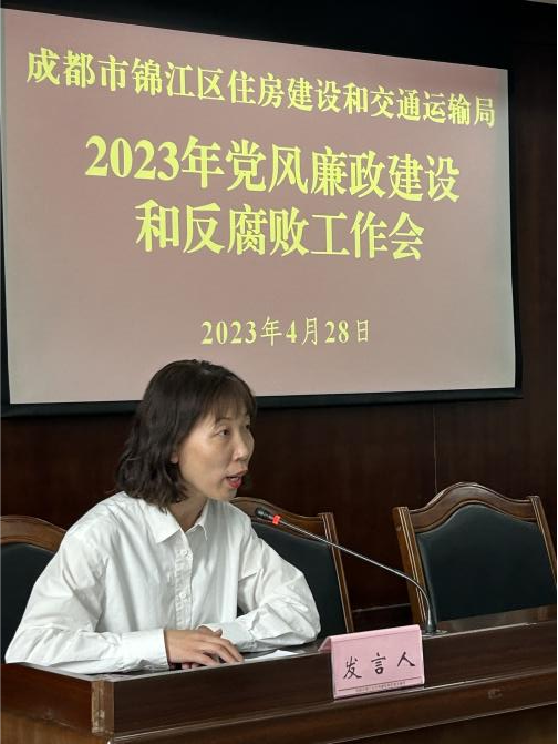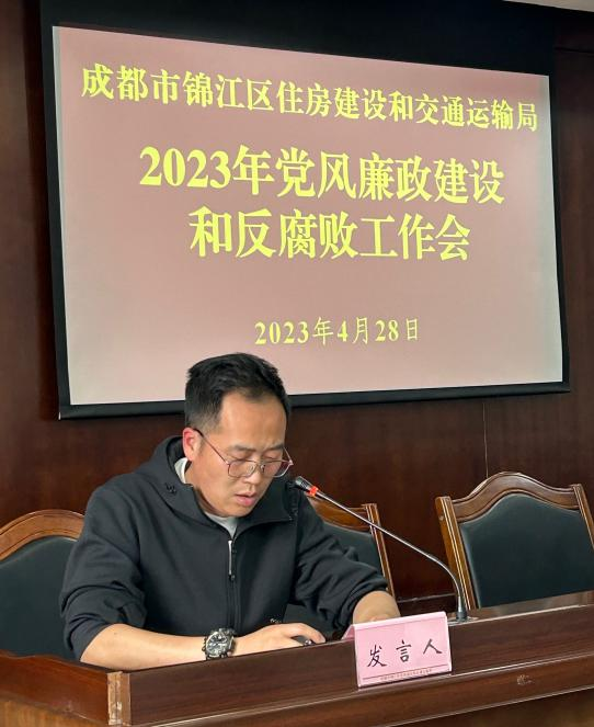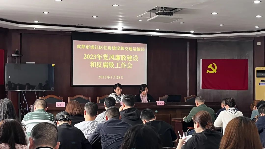 为深入学习贯彻习近平新时代中国特色社会主义思想,学习宣传贯彻落实党的二十大、二十届中央纪委二次全会精神以及中央和省市区纪委全会关于党风廉政建设和反腐败工作要求,进一步增强深化全面从严治党的政治定力,日前,成都市锦江区住房建设和交通运输局召开了2023年党风廉政建设和反腐败工作会议。