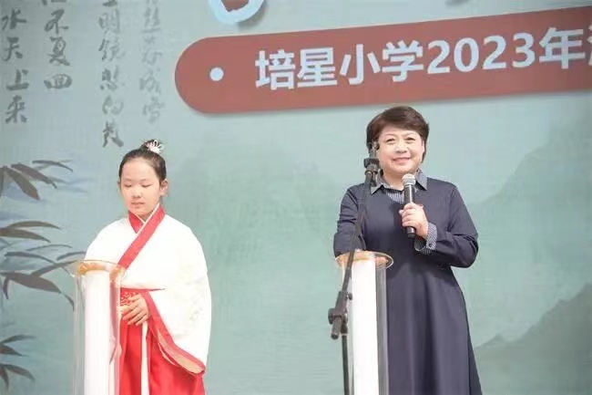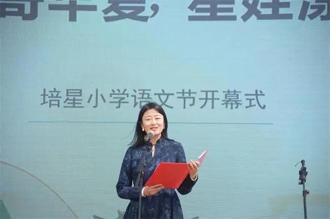 在开幕式上,培星小学语文学科教学主任窦飞向全校师生详细介绍了润心语文节实践活动,强调了中华优秀传统文化的宝贵以及建立文化自信的重要性,她鼓励孩子们汲取诗性精神,涵养诗性情怀。