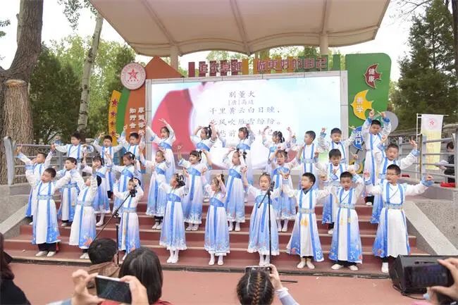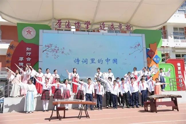 三年级的同学们用各式各样的展现形式,表达自己对古诗与文化的理解与传承,去回顾“采菊东篱下,悠然见南山”的那份闲情;感受“大漠孤烟直,长河落日圆”的那份壮观与豪迈;体会“问君能有几多愁,恰似一江春水向东流”的那份亡国悲情。