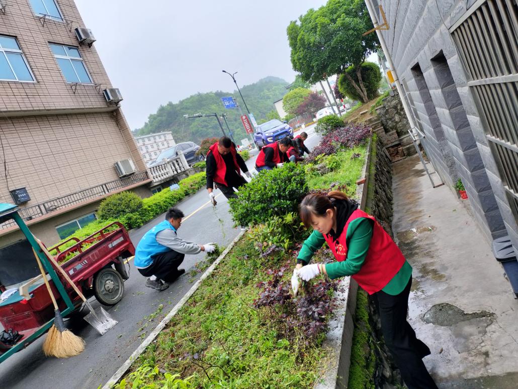 安仁村村两委组织志愿者开展“清洁家园迎亚运”志愿服务活动,对村内人员聚集的场所、卫生死角、落叶等进行清理。