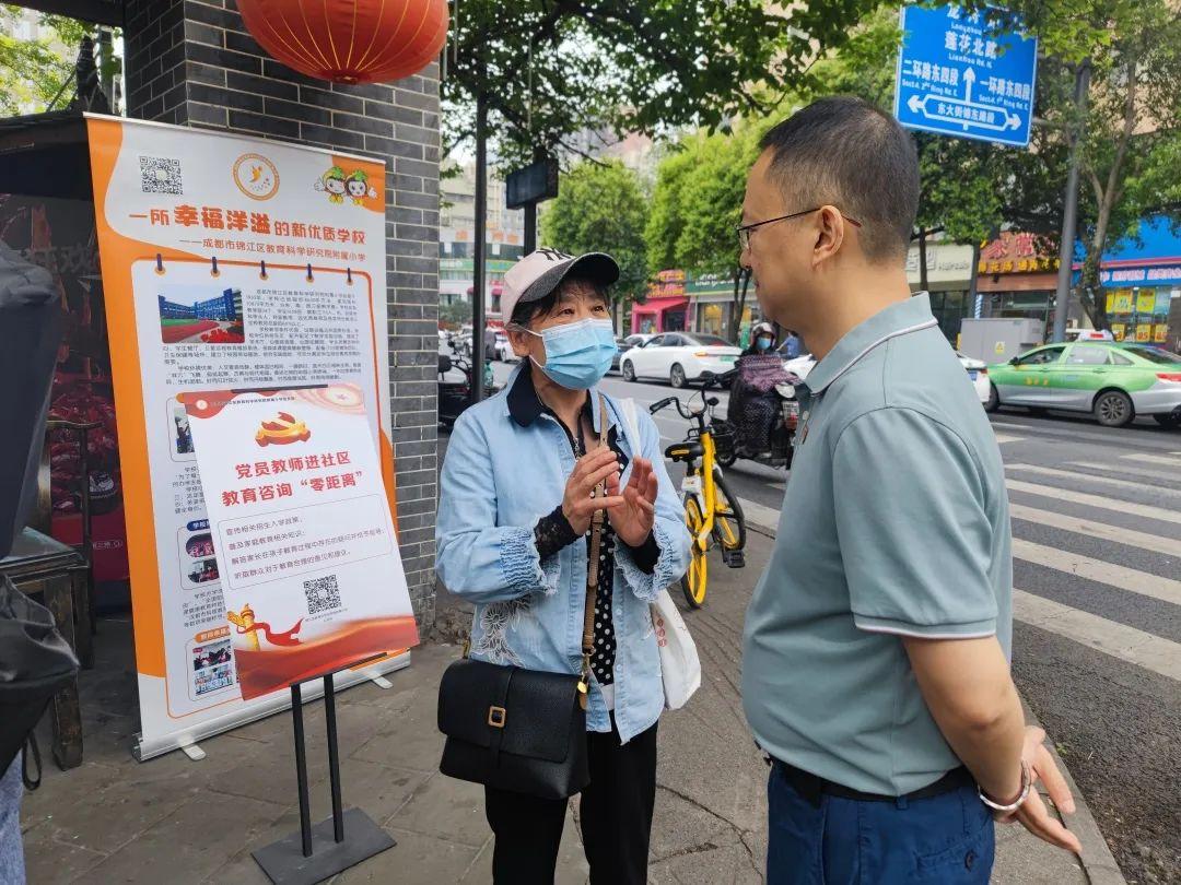为进一步巩固“我为群众办实事”实践活动成果,切实解决和满足社区群众对教育领域“可视”“有感”问题的诉求,让老百姓充分知晓教育招生政策,提升锦江教育服务水平,不断增强群众对锦江教育的满意度和获得感,近日,成都市锦江区教育科学研究院附属小学党支部书记祝宇带领党员教师、青年教师走进成都市锦江区牛市口街道得胜街社区开展“千名党员教师进社区”主题党日活动。