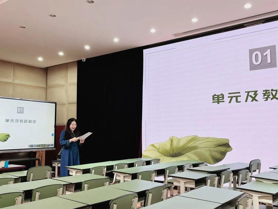 活动首先由五位教师进行说课。王辉老师、张译文老师、张欣鑫老师、李靖雯老师以及曾莉丹老师各自选择一个单元展开,确立单元学习主题,聚焦单元核心要素,针对性设计了学习任务。