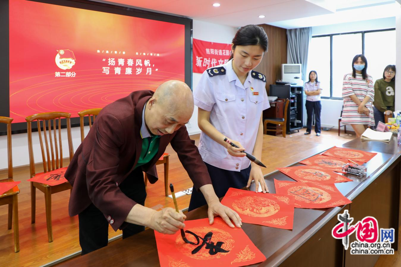 德阳经开区税务局纳税服务科青年干部潘佳琪在与退休老干部共同书写“廉”字后说:“身为新时代税务青年,应常怀廉洁之心,以清廉之我,展青年之风采,扬税海之风帆。以‘吾日三省吾身’的自省,在税收执法中挡得住诱惑,以‘心不动于微利之诱,目不炫于五色之感’的自律,在纳税服务中谱写一首清廉赞歌。”