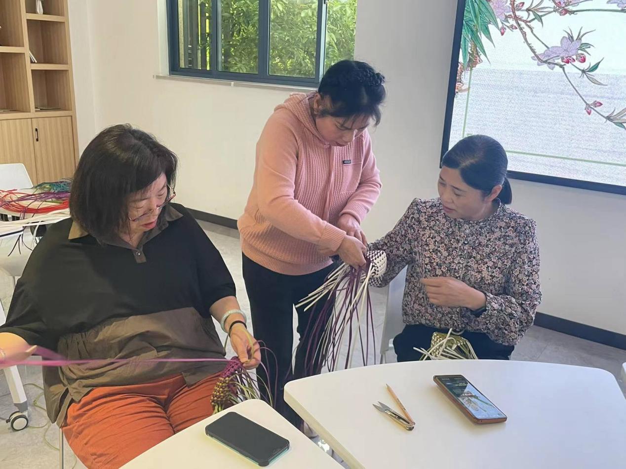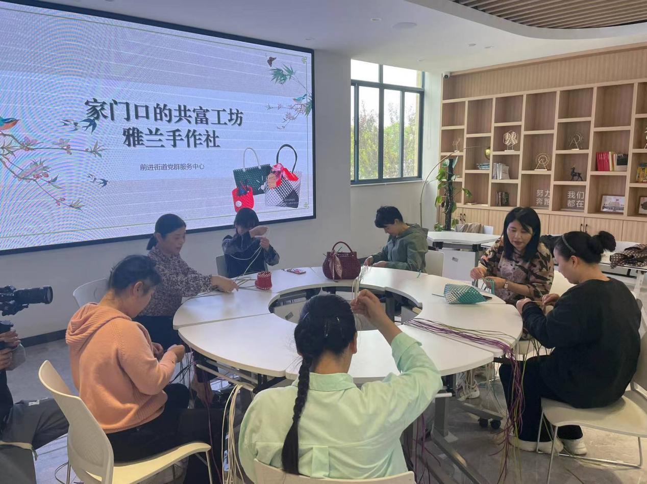 为帮助辖区内妇女就业有“术” 致富有“路”,5月10日下午,在杭州市钱塘区前进街道党群服务中心举办了“家门口的共富工坊”主题活动,特邀请雅兰手作社为居民带来精致的手作包包编织培训课程,带动前进下去居民开辟新的就业渠道。