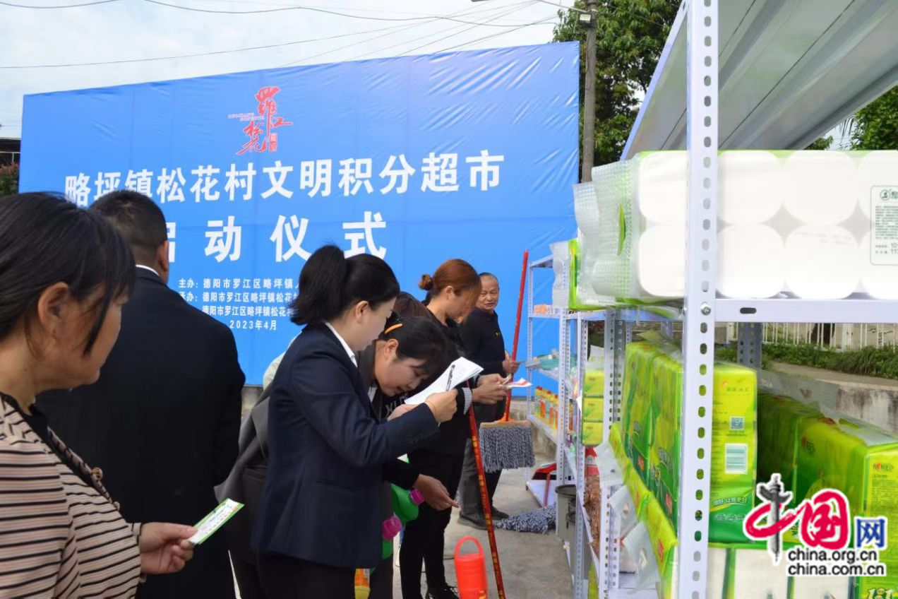 近日,在德阳市罗江区略坪镇松花村的“文明积分超市”里,货架上摆满了香皂、衣架、洗衣液等生活用品,300余名村民正兴高采烈地挑选商品。