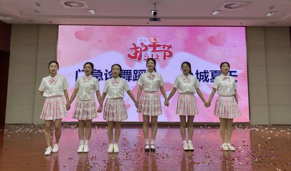 妇产儿科《生育舞蹈之桃花笑》用曼妙的舞姿,把以护佑妇儿安康为己任,托起生命摇篮体现得淋漓尽。