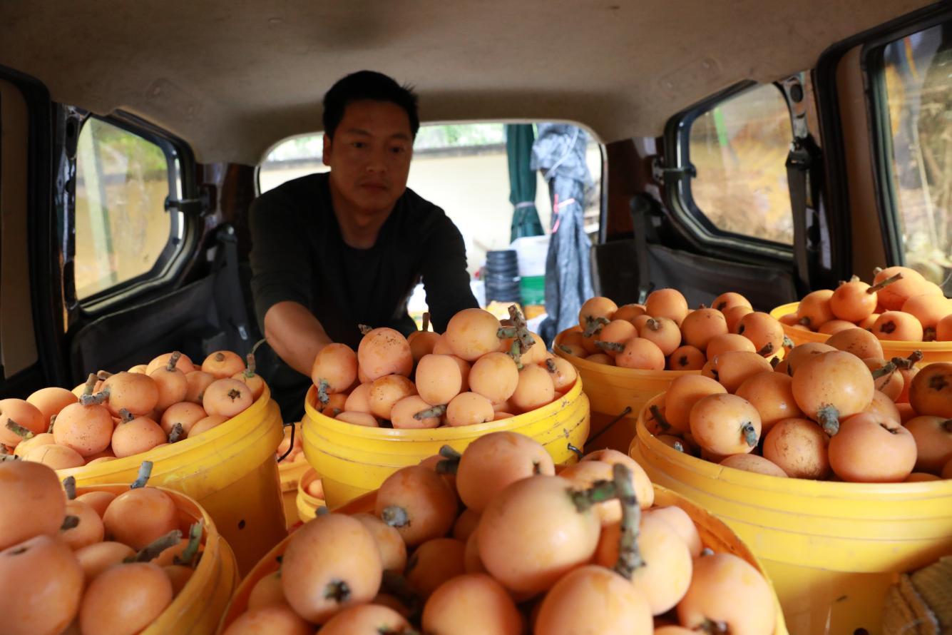 华涛生态采摘基地负责人叶一鸣正穿梭于浓密绿叶间,忙着将一箱箱枇杷装车。“我们的枇杷很多都已经订出去了,就是因为果品好,很受市场欢迎,每年都供不应求。” 叶一鸣介绍,自己种植的是“大五星”枇杷,是多年来的“明星”品种,特级果单果达128克,比鸡蛋还大。