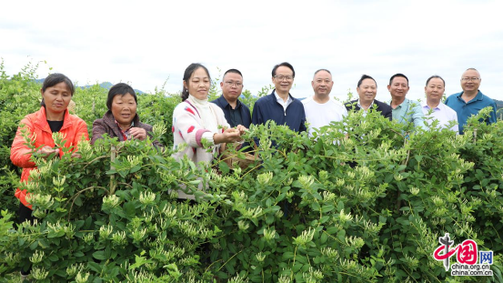 看到金银花产业蓬勃发展的良好势头和村民们兴高采烈的表情,耿福能董事长感到非常欣慰和高兴。他饱含深情地对大家说:好医生集团将继续贯彻习近平总书记“民族要复兴,乡村必振兴”的指示精神,把产业振兴作为乡村振兴的重中之重的工作来抓,让大家获得更多的收入更大的实惠。今后,我们将在党的二十大和全国“两会”精神指引下,从5个方面加大金银花产业的投入和建设,促进更大的发展:一是扩大规模、面积增加到一万亩;二是提档升级,赋能科学技术,让园区种植质量和经济效益都有较大提升;三是实现园区机械化耕作和鲜花采摘,降低劳动强度和生产成本;四是推进一二三产业一体化运作和农旅文融合发展,增强园区综合功能,拓宽农民增收渠道;五是研发多种多样适应市场需求的终端产品,提高金银花的综合利用价值。