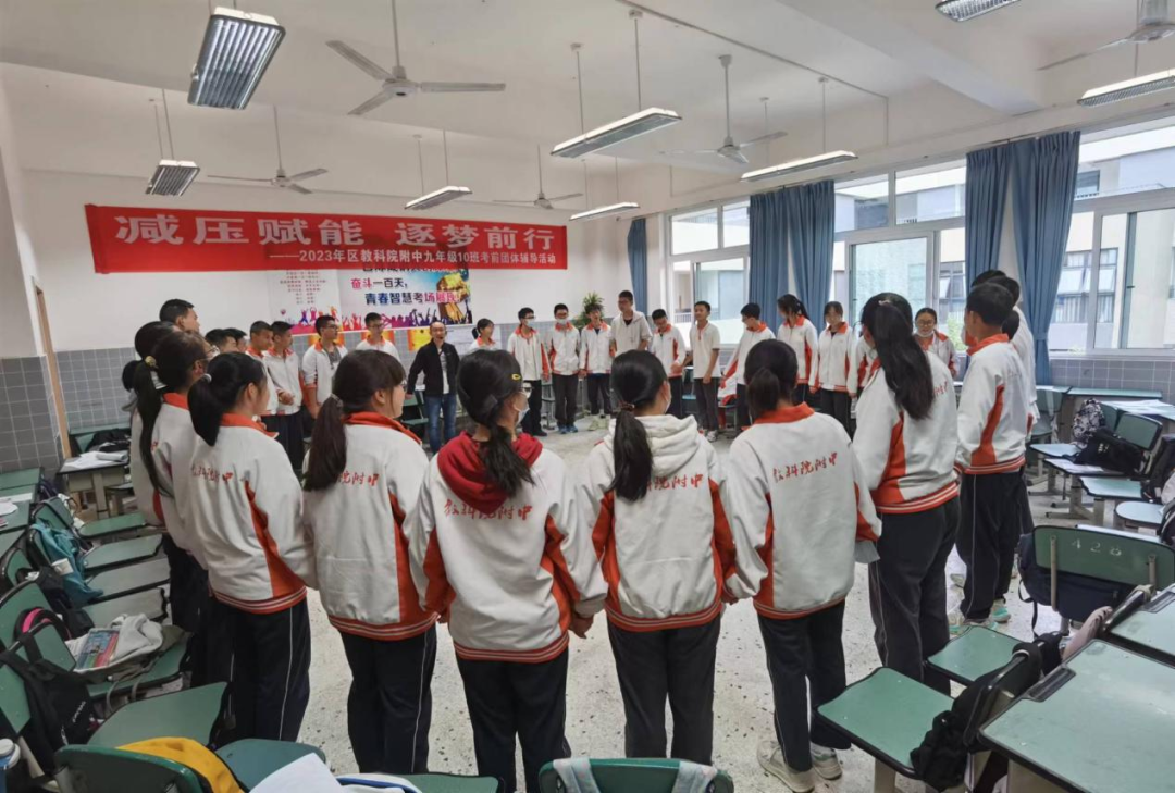 为营造良好的心理健康教育氛围,促进同学们陶冶情操,建立自信,塑造健康自我,增强心理素质,调动学生感恩生活、接纳自我,近日,成都市锦江区教育科学研究院附属中学开展了“赋能减压 逐梦前行”初三年级分班团体心理辅导活动,正式拉开成都市锦江区教育科学研究院附属中学2023年度心理健康月活动的帷幕。