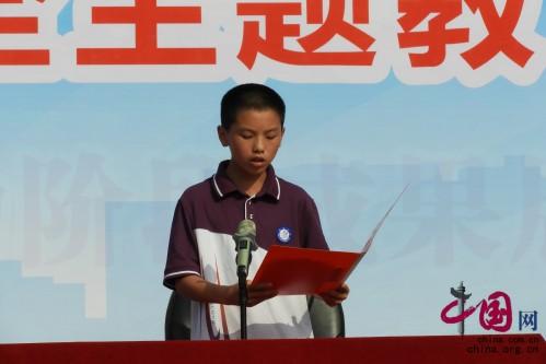 学生代表魏铭发言,要时刻将交通安全牢记在心,自觉遵守交通规则,绝不乘坐“黑车”,拒绝有酒驾、醉驾行为车辆,不驾驶机动车、电动车上学,全力做到“文明交通,平安出行”。
