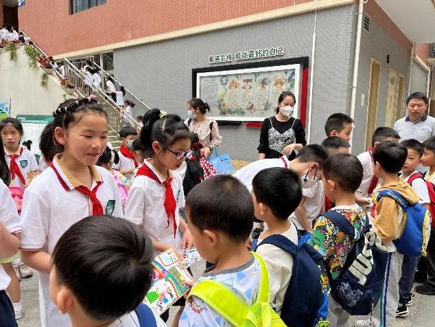 活动最后,芙蓉幼儿园的孩子们为小学哥哥姐姐送上自制小礼物,感谢他们的热情招待。同时,小学的哥哥姐姐们也拿出自己的画回赠给幼儿园弟弟妹妹,祝福小朋友们今后顺利步入小学生涯,成为一名优秀的小学生。