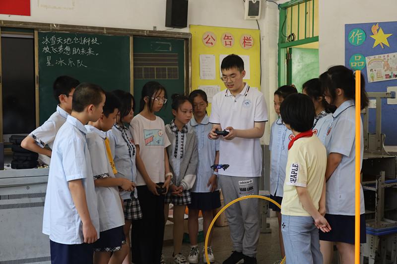 北航营的科普梦拓为同学们带来了仿生扑翼飞行器展演,在梦拓深入浅出地介绍下,像真的鸟儿一样靠扇动翅膀飞行的扑翼机一瞬间吸引了孩子们的注意;