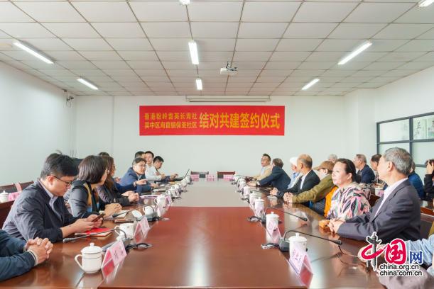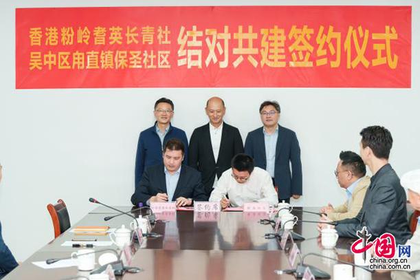 香港粉岭耆英长青社成立于1986年10月,属祥华社区会堂管理委员会,扎根粉岭长华邨35年,持续为居民提供各类社交、健康讲座、协助申请社会福利等服务,积极参与地区事务,与香港各社区组织和政府部门保持紧密合作,致力为粉岭居民提供更好的生活环境和社会服务。吴中区甪直镇保圣社区秉承“以人为本、为民服务”理念,依托居民服务中心、学习教育中心、养老休憩中心、文体活动中心,大力弘扬优秀传统文化,不断强化人才队伍,完善配套设施和服务内容,创新社会治理模式,着力营造崇文向善良、邻里互助、民生和谐的良好氛围,先后荣获“江苏省民主法治示范社区”“江苏省和谐社区建设示范社区”“省级创业型社区”等荣誉。下一步,双方将加强在社区服务、民主管理、文化建设等领域的交流,通过居民互访、节日互动、共建互帮等方式,不断探索新的合作内涵,推动两地社区治理的双向互动、协同发展。同时,坚持以中华文化为纽带,厚植爱国情怀,传承爱国初心,充分激发两地同胞特别是年轻一代爱国、爱港、爱乡热情,汇聚更多青年人才来吴中创新创业,推动两地民众在交往交流中增进友谊、深化共识、汇聚力量,为维护“一国两制”的生动实践贡献力量。