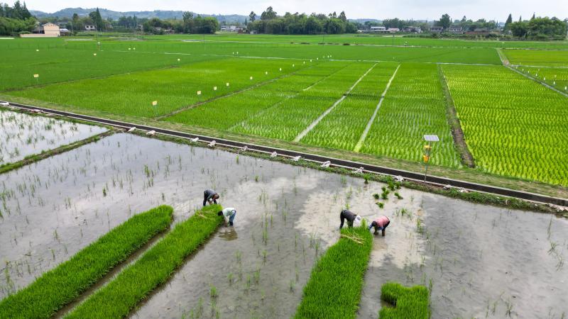 记者了解到,水稻直播的杂草防控是最大的技术障碍,而“洁田稻”与配套除草剂的使用,既能降低化学除草的区险,也能降低用药成本(减少除草剂的施药次数和用量)、有效地防除杂草和“落粒谷”,避免杂草稻、稆稻对水稻的危害,并能提高稻谷商品性。“洁田水稻可有效改变传统的耕作方式,减少农业生产的投入,为农户节本增效120-300元/亩,省工节支增收效果显著。”彭山区农业农村局种子站相关负责人表示,通过这些试验,一方面为国家和省级水稻品种审定提供科学依据,另一方面示范展示优新良种,为当地调优品种种植结构,提质增效提供技术服务。插秧只是水稻育种科研过程中的一个环节,下一步,科研基地相关工作人员还将加强田间管理,做好观察记载等工作。