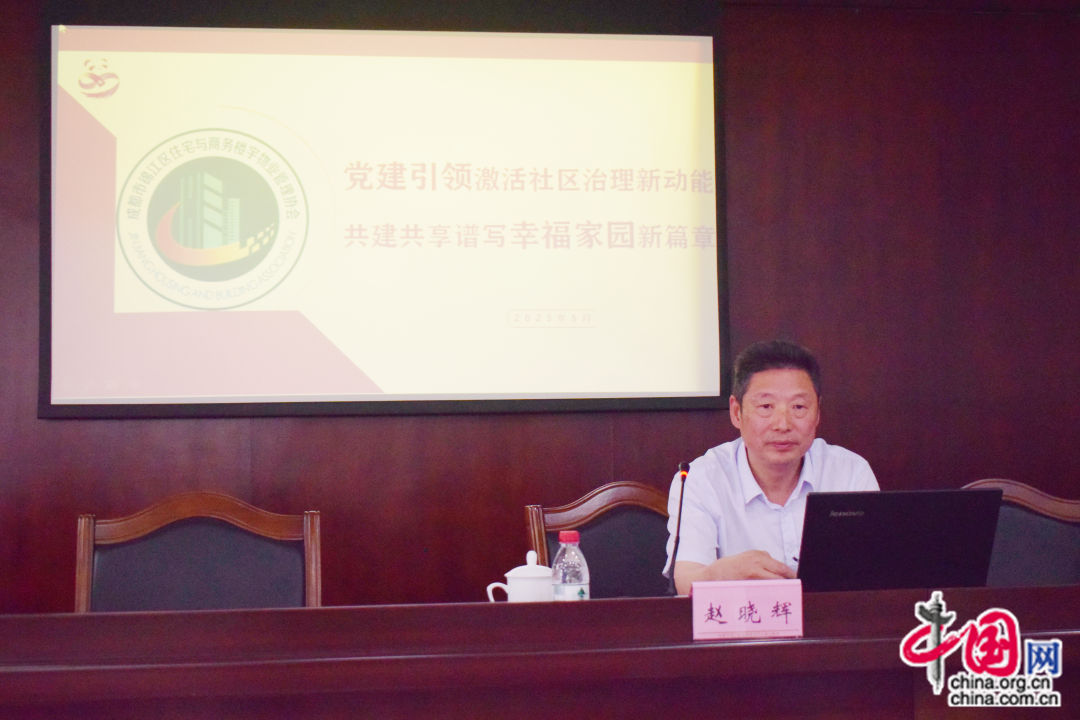 中电建物业总经理、成都市物业协会副会长、锦江区住宅与商务楼宇协会综合党委书记、常务副会长赵晓辉,则从理论和项目实操两个部分分享了在党建引领下如何激活社区治理的新动能,其中举例分享了西岸观邸小区物业服务通过多方联动,共建共治,对“旧三多”问题乱象展开持续深入综合治理,聚力改善小区居住环境,创造小区居民的安全感,共建共享谱写幸福家园的治理新经验。