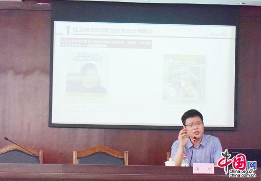 在“如何深化社区物业党建联建,推动‘蓉城先锋·暖心物管’提质增能”培训会上,四川大学公共管理学院社区治理与现代物业研究中心副主任、中国物业智库专家、四川省住建厅物业管理专家伍三明分别从“社区物业党建联建形势及政策解读”和“蓉城先锋·暖心物管提质增能的三点建议”进行了分享。