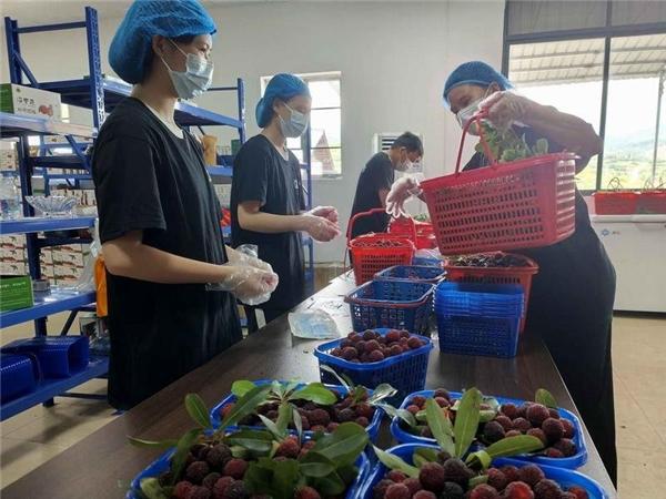 另一边的杨梅打包销售车间也同样忙得不可开交。工作人员忙着把山上采摘下来的杨梅精选打包,因为今天又是特殊的爱的表达日,农场还设计了“520爱你梅商量”精包装,向爱人表达一份甜蜜的爱意。
