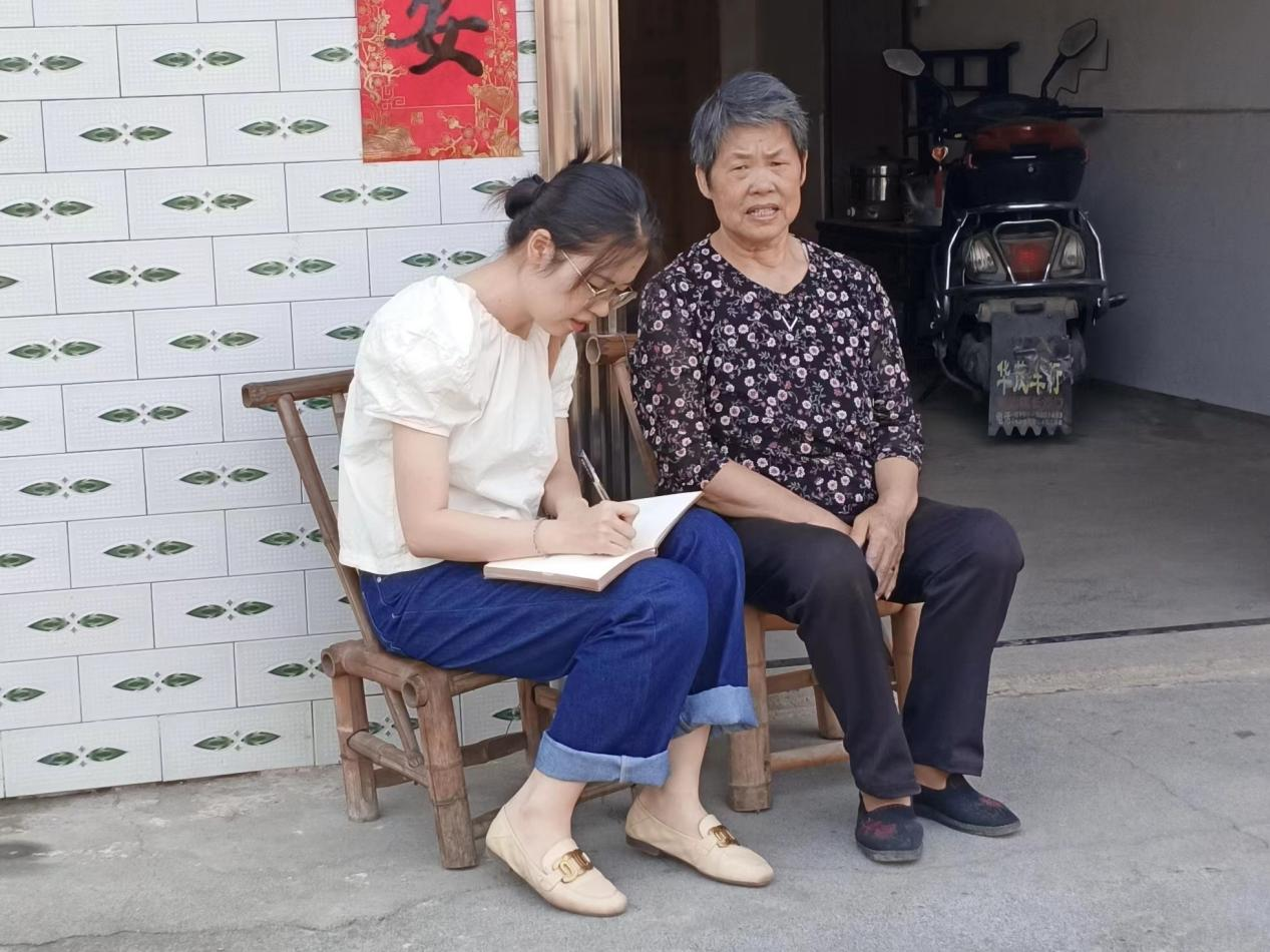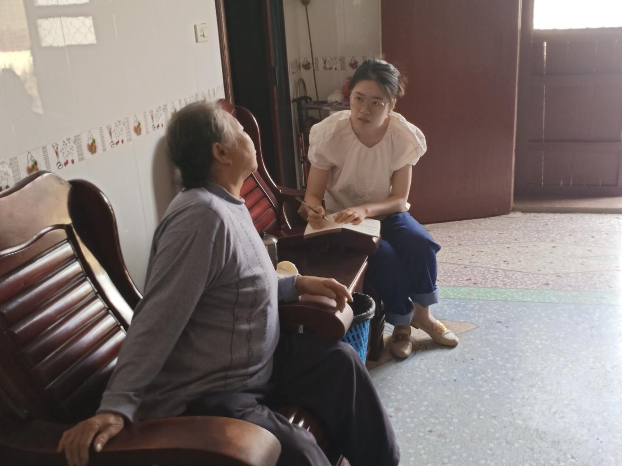 图为赤山镇黄花村书记助理郭嘉欣走访群众