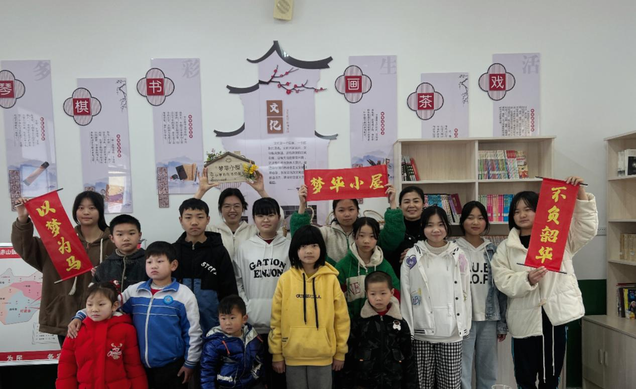 图为郭嘉欣在黄花村开展的梦华小屋关爱留守儿童活动