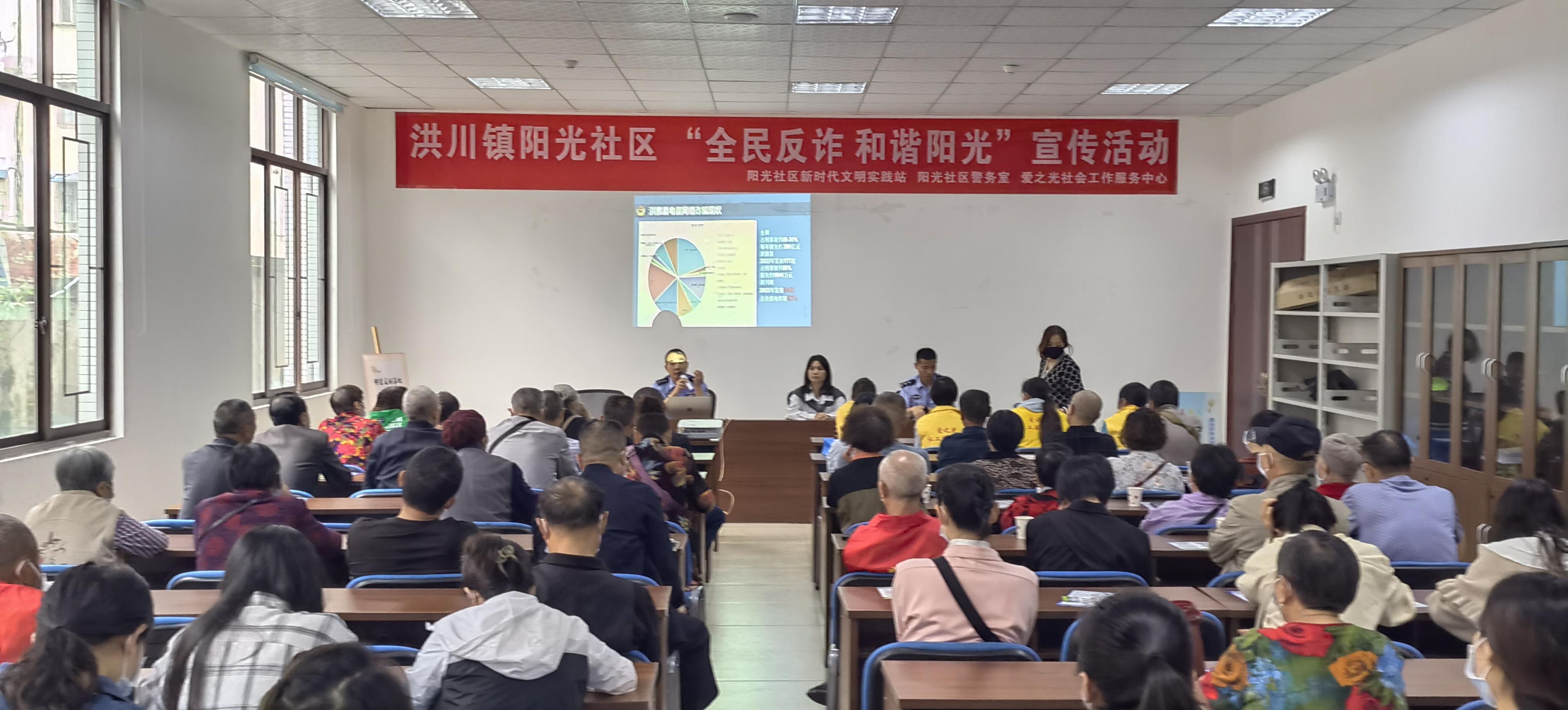 洪川镇阳光社区党委书记沈文文介绍:“今天,我们阳光社区开展了‘全民反诈、和谐阳光’活动,希望居民们提高各种防范意识,并积极向身边人宣传,从而让大家的财产和生活安全都得到进一步的保障。”(饶刚)
