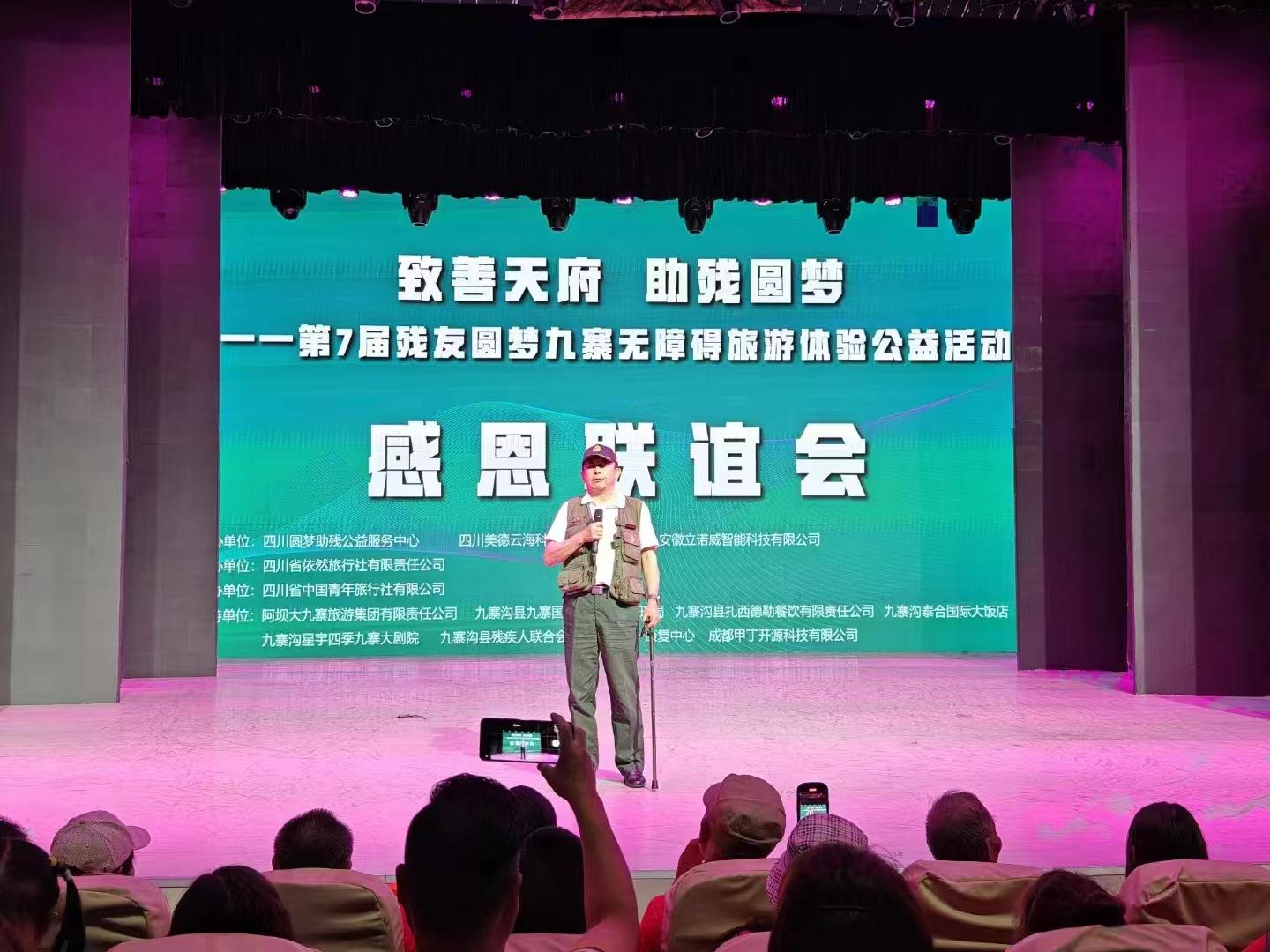 本次活动由四川圆梦助残公益服务中心、四川美德云海科技有限公司、安徽立诺威智能科技有限公司联合主办。四川省依然旅行社有限责任公司、四川省中国青年旅行社有限公司为本次活动提供了专业旅行服务。成都市成华区新联会和致公党成都市委会社会发展与服务委员会为本次活动提供了志愿者协助。活动还受到了阿坝大九寨旅游集团有限责任公司、九寨沟风景名胜区管理局、九寨沟县扎西德勒餐饮有限责任公司、九寨沟星宇四季九寨大剧院、九寨沟县残疾人联合会、四川省八一康复中心、成都甲丁开源科技有限公司、九寨沟泰合国际大饭店等爱心企业和单位的大力支持,使得这次公益活动能够顺利进行。