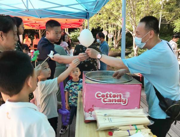 活动现场,“趣味表演”区域,小朋友们目不转睛地看着魔术师熟练的变出鲜花和玩偶,生怕一眨眼就错过了,在一阵阵鼓掌声和欢呼声中,把整个活动的氛围推到了高潮;“趣味游戏”区域,小朋友们天马星空地向工作人员许下“愿望”,不一会,“棒棒糖”气球、“帽子”气球”、“击剑”气球便呈现在小朋友的手中;“趣味美食”区域,冰激凌、棉花糖和爆米花可是小朋友的最爱,经过工作人员的细心指导,小朋友们品尝完美食后都能有序进行垃圾分类投放。