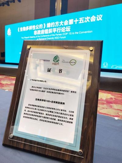 2021年,广汽丰田“云龙天池多重效益森林恢复项目”入选联合国《多样性公约》缔约方第十五次会议(COP15)“生物多样性100+全球典型案例”。同年,广汽丰田生物多样性保护项目全面升级,品牌升级为“一路青山·生机森林”,将持续为推动“双碳”和生物多样性保护提供更多有益经验。