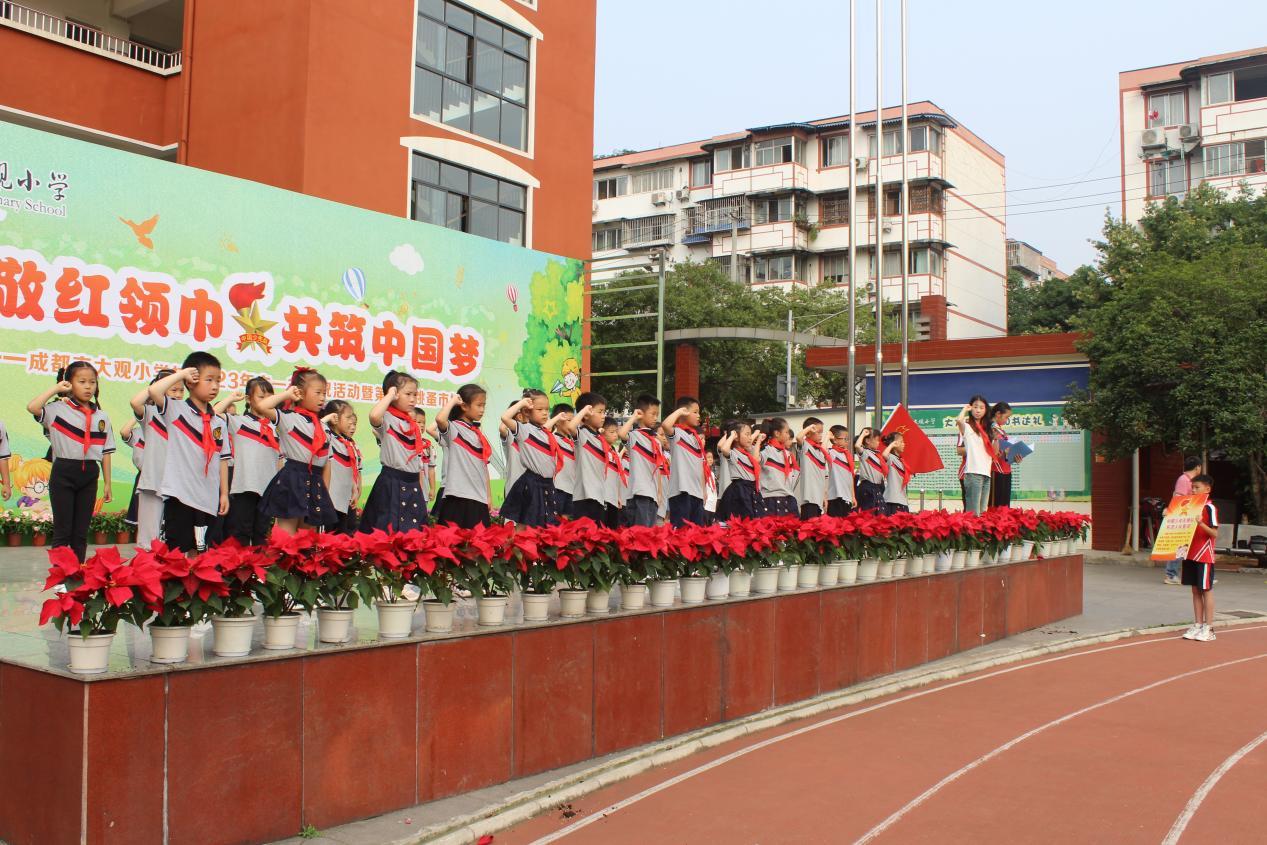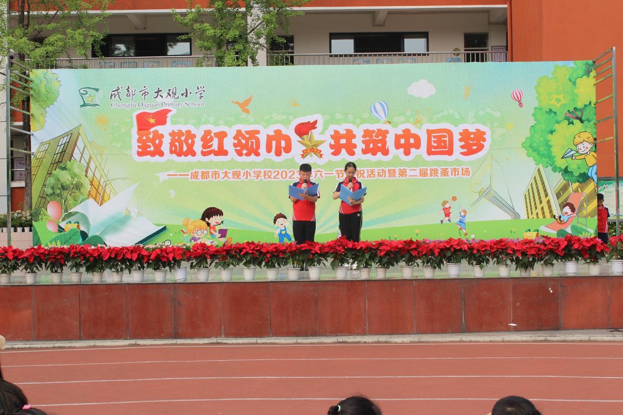 最美不过童年时。为了让孩子们度过一个快乐、充实而有意义的节日,5月31日,在“六一”国际儿童节来临之际,成都市大观小学开展了“致敬红领巾 共筑中国梦”——2023年六一庆祝活动暨第二届跳蚤市场主题活动。学校全体师生携手家长代表及大观幼儿园的小朋友们,在欢笑声中迎接属于孩子们的节日。