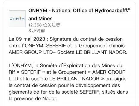 摩洛哥国家矿业和碳氢化合物管理总局ONHYM官方发布合作消息