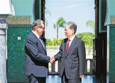 赵乐际委员长说,在习近平总书记和穆罕默德六世国王的战略引领下,中摩关系实现跨越式发展,正处于历史最好时期。双方要进一步落实两国元首重要共识,推动中摩战略伙伴关系实现更高水平发展。中方感谢摩方恪守一个中国原则,在台湾、涉疆、涉藏、人权等问题上给予中方宝贵支持。中方愿同摩方共同努力,深化两国在共建“一带一路”框架内合作,积极落实首届中国—阿拉伯国家峰会及中非合作论坛成果,挖掘合作潜力,扩大人文交流,促进两国文明互鉴、民心相通。中方愿同包括摩方在内的阿拉伯国家一道,以构建面向新时代的中阿命运共同体为引领,开创中阿战略伙伴关系更美好未来。