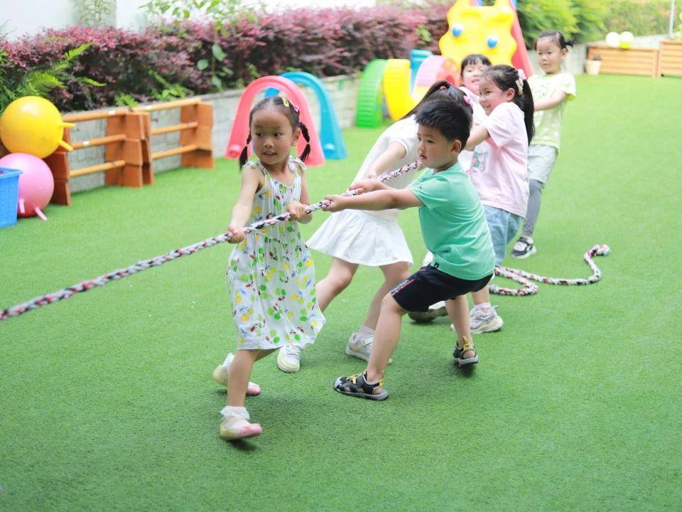蹦蹦床、足球、跷跷板、拔河、滑板车、投篮、羽毛球……在老师们的引导下,孩子们踊跃参与,主动拉着小伙伴们一起尝试各种运动项目,充分体验了运动和游戏的乐趣。