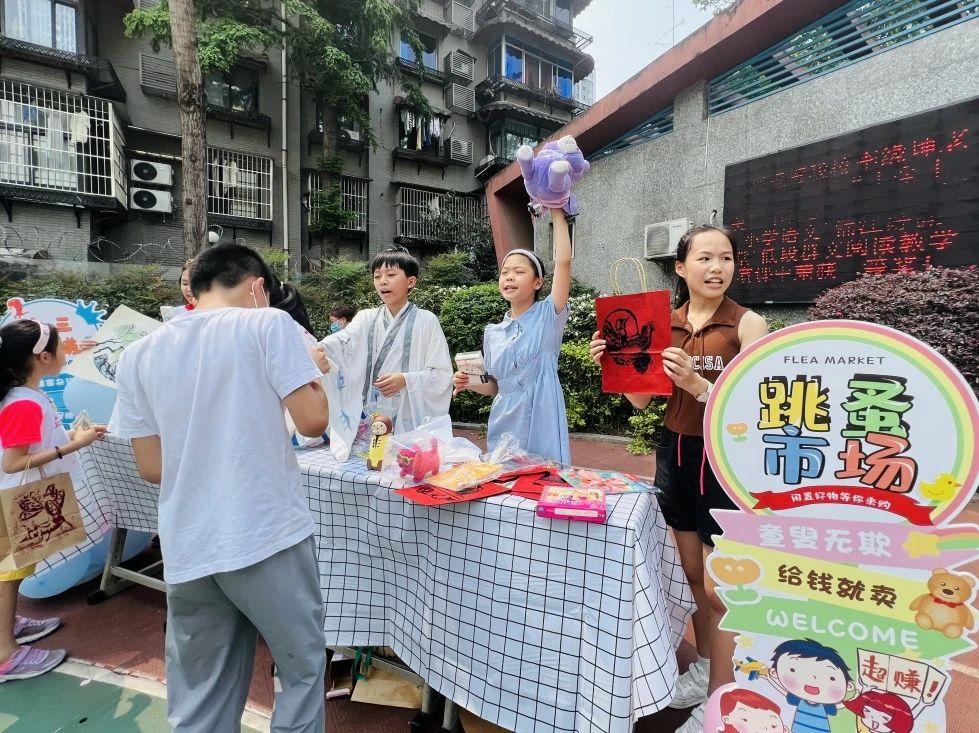 逛不完的市场,淘不完的精彩。为庆贺“六一”国际儿童节,同时搭建好书互换、旧物流通平台,培养学生的表达能力、组织能力、 和理财能力,提高参与社会实践活动能力,5月31日上午,成都市天涯石小学昭忠祠分校举行了“跳蚤市场”活动。