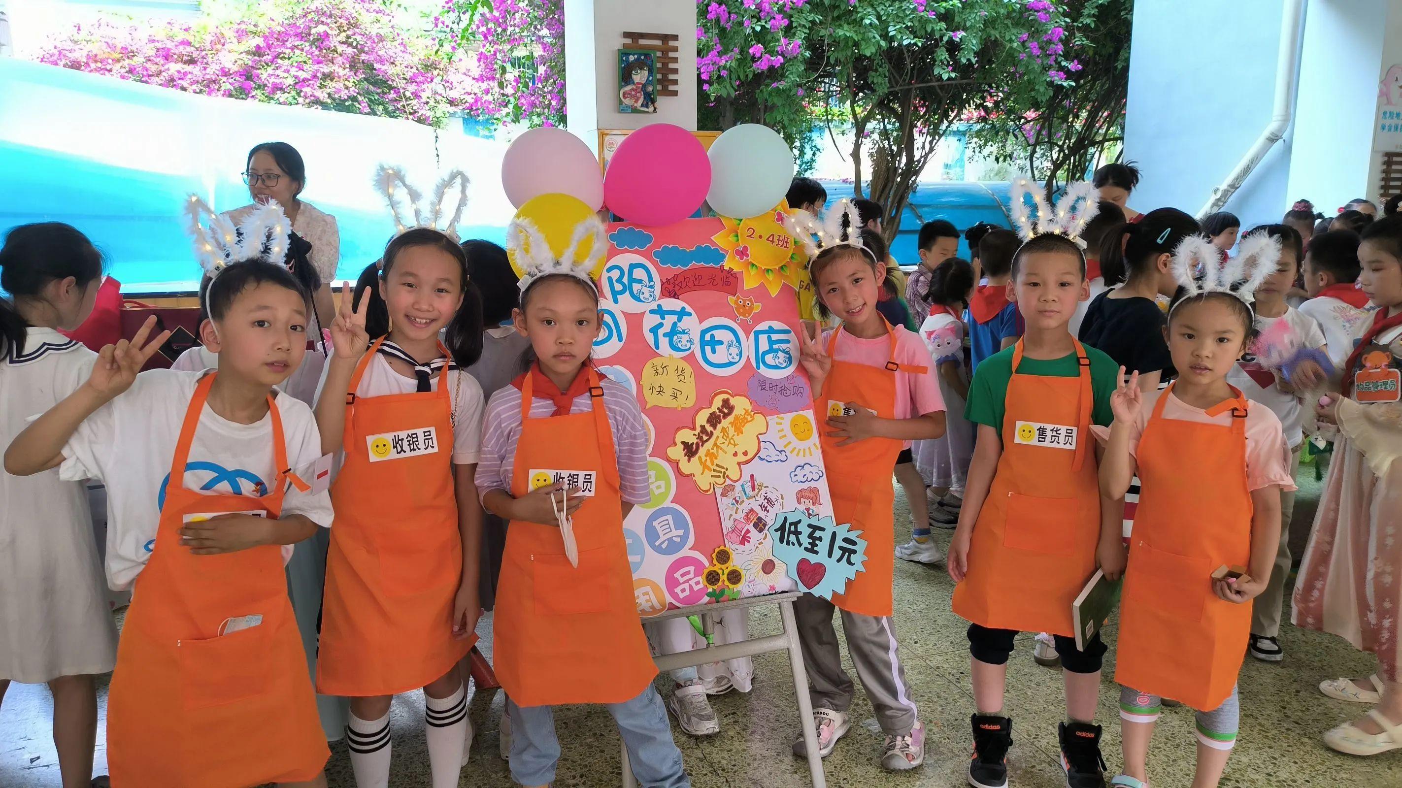 文具小店、多啦小屋、很哇塞小店、交个朋友小铺、向阳花田店……活动当天,操场上人声鼎沸,一条条热闹繁华的“商业街”拔地而起,一排排琳琅满目的“小铺子”联袂而建,同学们给这些铺子取了简单好记的名字。还有精心设计的条幅、别出心裁的标语、琳琅满目的商品,把市场装点得别有氛围。