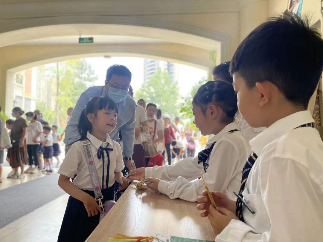 “同学,你好!”进入大厅,银杏小学的哥哥姐姐将自己精心制作的书签小礼物送给孩子们,大家接过书签,礼貌答谢。