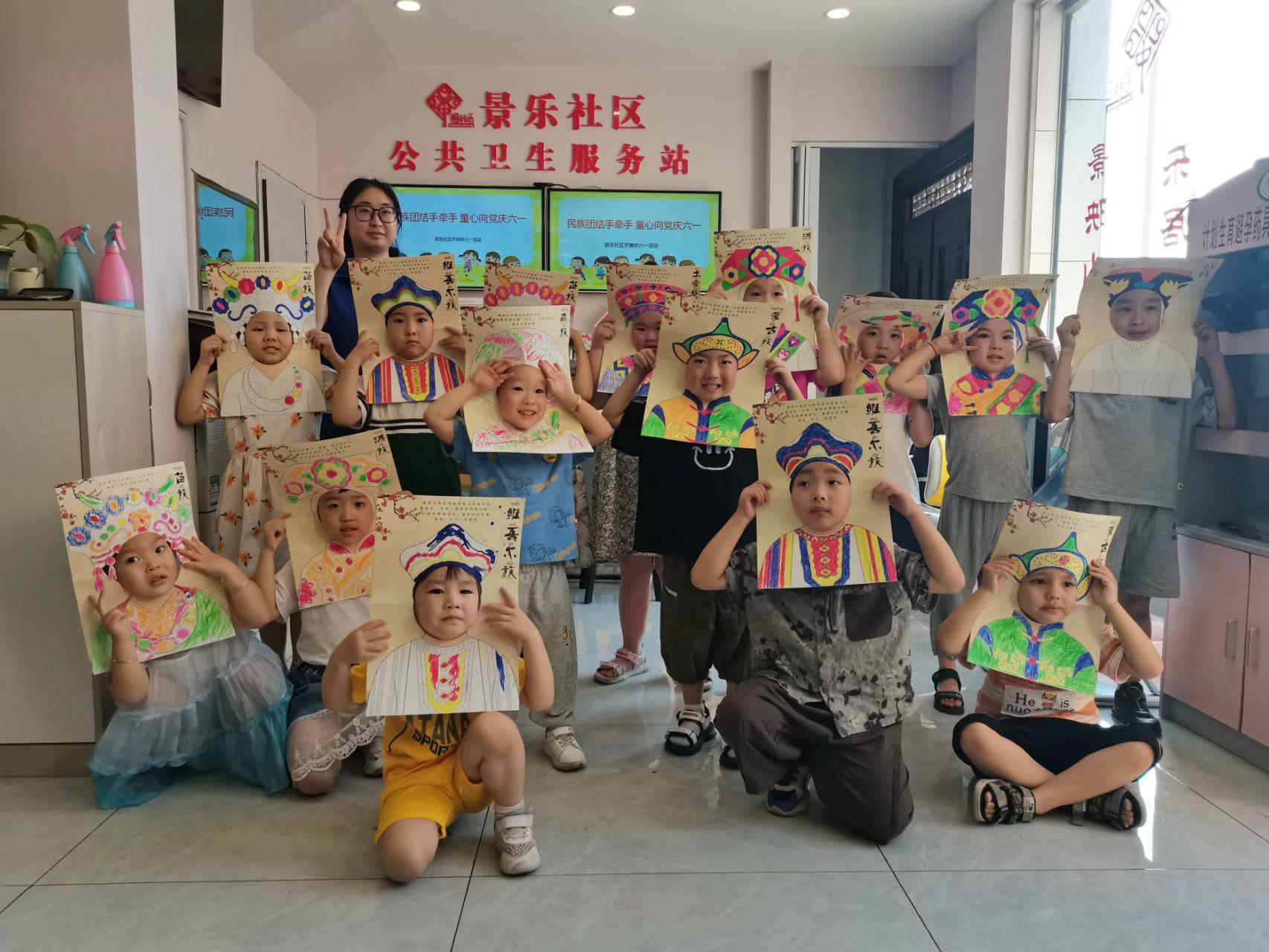 活动中,社区工作人员组织小朋友们和家长共同手绘少数民族头饰。在手绘过程中,社区工作人员用简单易懂的语言向大家讲解了少数民族的服饰特点和传统节日,让小朋友们和家长了解到了各个民族不一样的美。