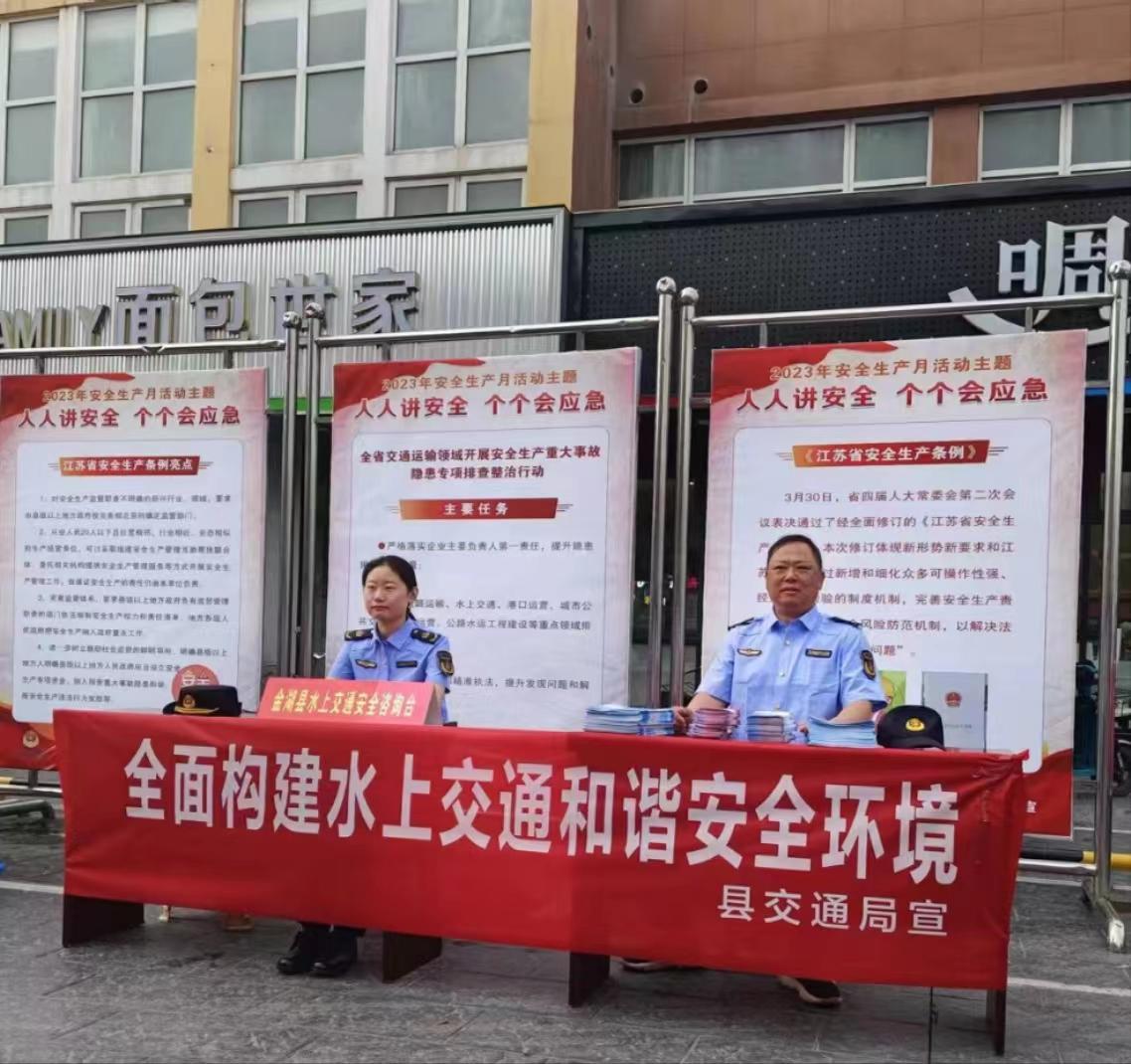 今年6月份是全国第22个、全省第30个“安全生产月”。此次活动是安全生产月活动的一项内容,旨在通过宣传活动,让群众把“安全”理念融入日常生活,提高广大人民群众的水上交通运输安全意识、法制意识和事故防范意识。