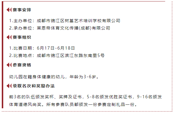 生命因运动精彩,篮球让梦想成真。为坚持德智体美劳全面发展,将“五育并举”落在实处,同时促进幼儿身心健康发展,培养幼儿坚强的意志和团队协作精神,6月17日至18日,成都树基教育第三届“树基杯”篮球邀请赛将正式打响,各幼儿园的小运动员们将纷纷登场,向冠军发起冲击。