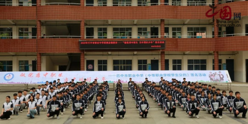 为全面落实立德树人根本任务,积极培育和践行社会主义核心价值观,教育引导学生自觉养成良好的思想品质和行为习惯,全面提升学生综合素质,6月5日上午,巴中市职业中学开展了践行《中等职业学校学生公约》主题教育签名活动,活动由学校副校长吴玉萍主持。