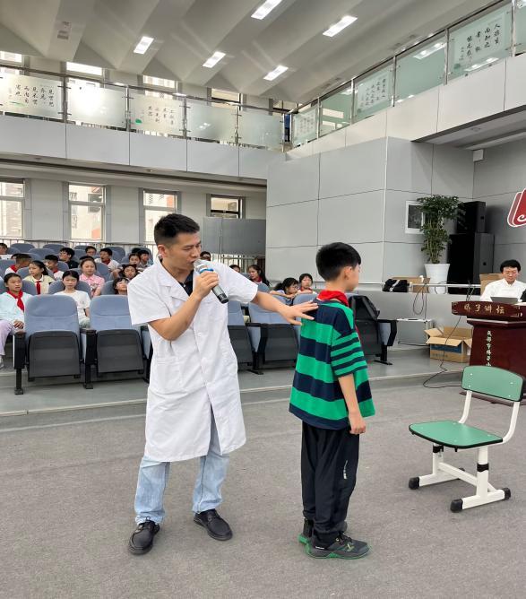 老师们通过播放中医药科普动画短片和展示不良坐姿图片的方式,引导学生讨论造成脊柱侧弯的原因、脊柱健康与视力的关系等问题,从而帮助同学们认识脊柱侧弯的危害,并对脊柱的构造和作用作了详细讲解。