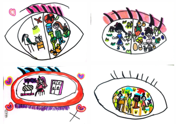 “关于眼睛,你知道些什么?”“如果看电视看很久,我的眼睛会疼,也会很晕。”“拿尖锐的东西的时候要小心,不能戳到眼睛,它很脆弱。”……活动伊始,老师们在班级教室通过图片和视频来帮助孩子们认识眼睛的结构,引导孩子们思考如何保护眼睛。