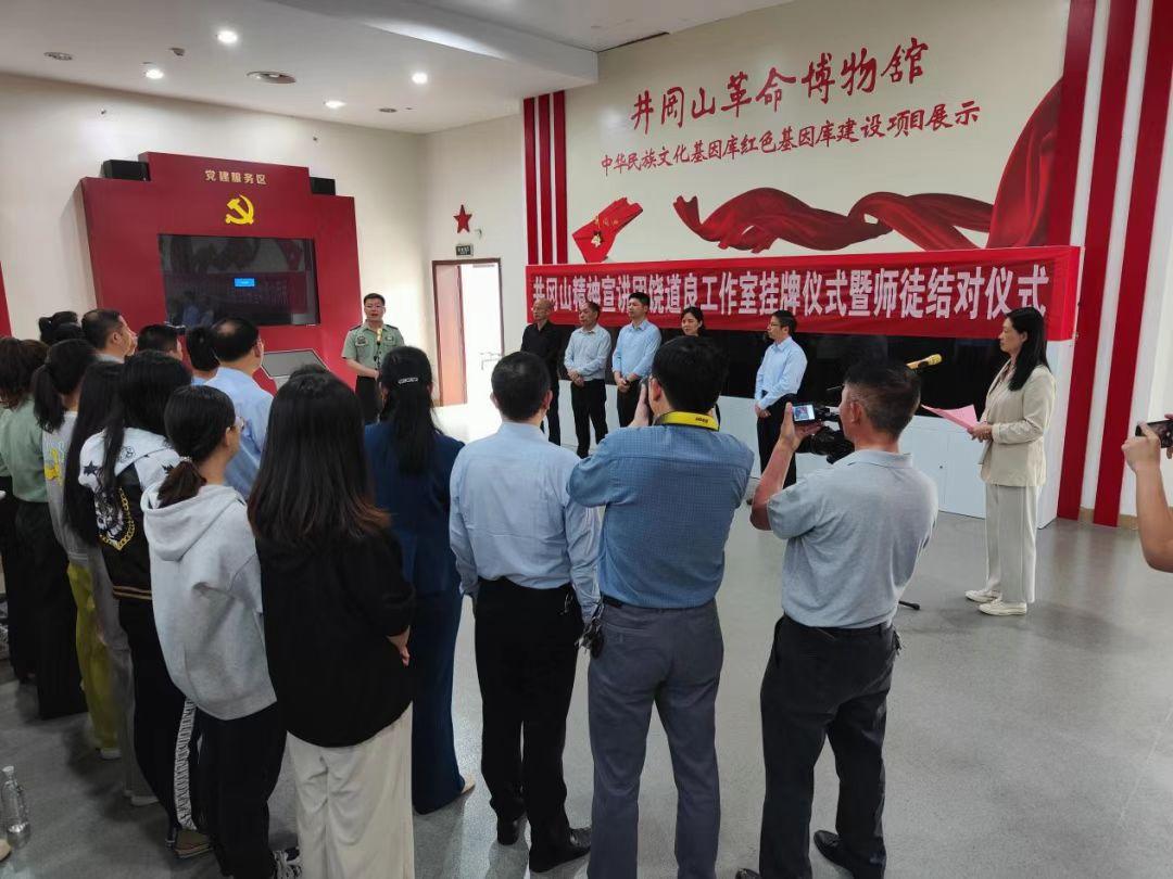 仪式上,弟子代表廖俊杰同志介绍此次仪式的目的和师徒结对的理念传承。他引用韩愈的话说“师者,传道授业解惑也。”作为学生,我们应该是“明道、承业、通达。”明大道,要时刻明白我们身处井冈山这片红土圣地,手握着话筒是为谁发声,要讲好中国共产党的故事,讲好井冈山的故事;承大业,要始终认识我们从事的一份光荣的事业,为先辈守灵,为后辈铸魂,要传承好革命先辈的革命精神,赓续好红色血脉;通达人生,世事洞明皆学问,人情练达即文章,要向师父们学做人、学做事,谦恭虚己、慎思笃行,为擦亮井冈山革命博物馆这块金字招牌贡献力量。