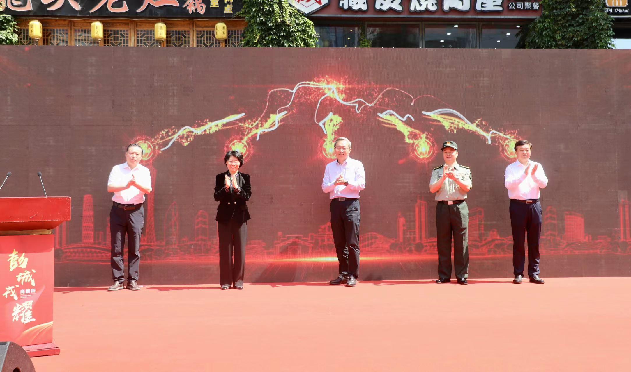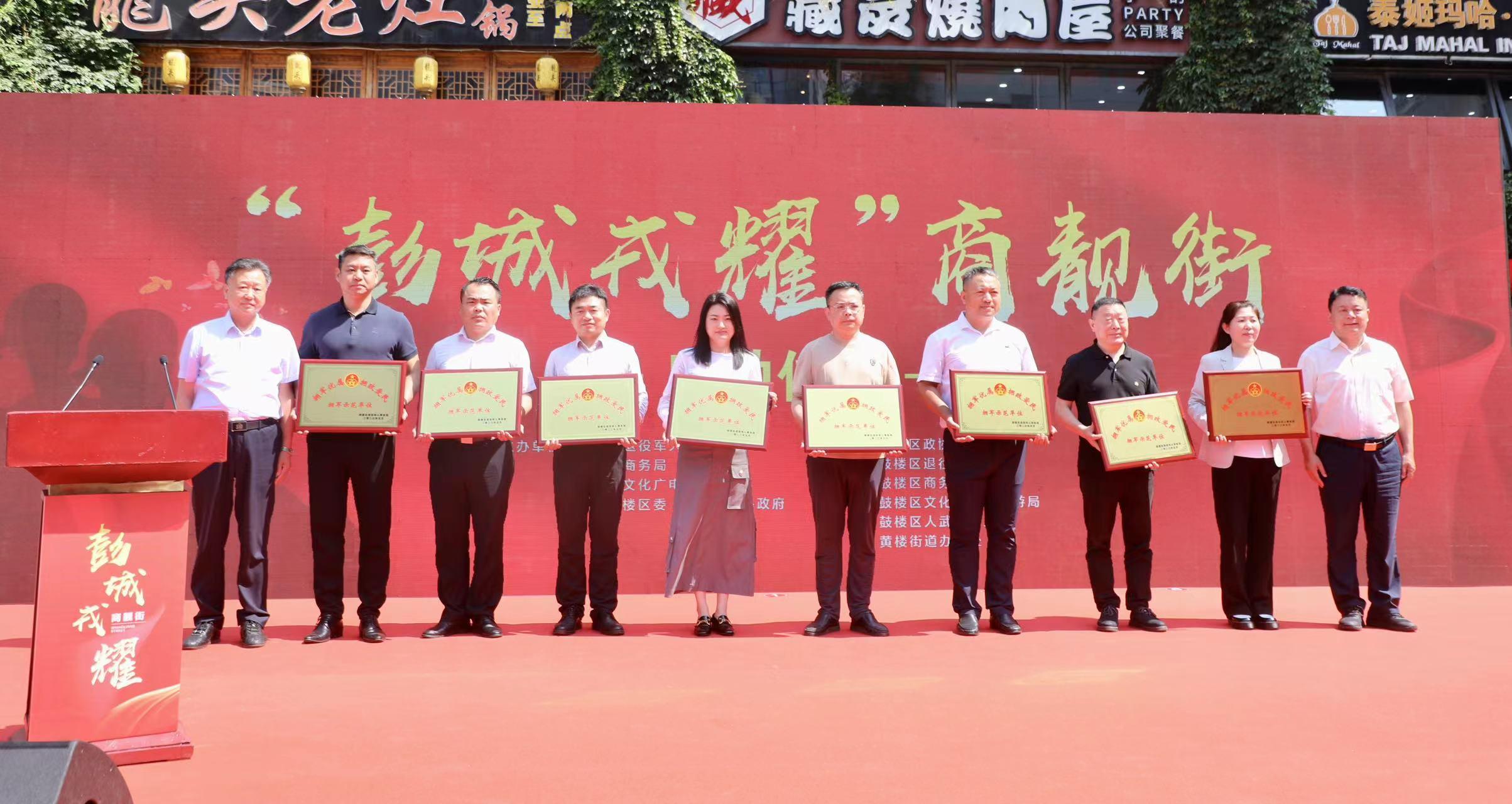 为进一步加强军政军民团结,深化巩固鼓楼区获得“江苏省双拥模范区”八连冠成果,助力徐州市创建“全国双拥模范城”十连冠,6月6日上午,徐州市鼓楼区“彭城戎耀”商靓(量)街启动仪式在市中心商圈举行。江苏省退役军人事务厅副厅长徐卫,徐州市委副书记韩冬梅,徐州军分区大校政治委员黄建新,徐州市政协副主席邱成,徐州市退役军人事务局局长赵忠德,鼓楼区委书记罗德清,区政协主席吴以广,区委常委、人武部部长王超等出席活动。